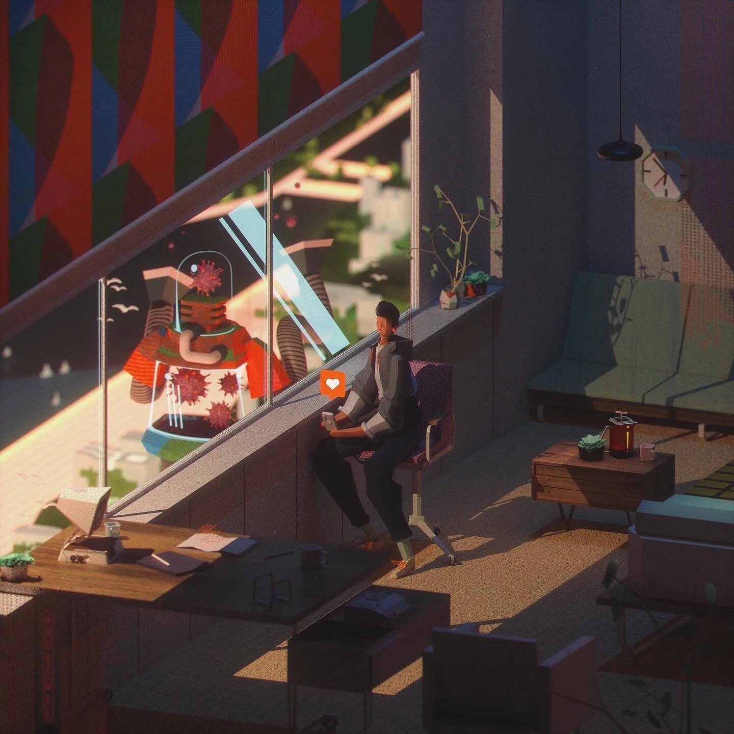 3d animated illustration created by André Wee in response to the KAWS HOLIDAY exhibit that came to Singapore in 2021 and was made closed to the public due to court order that was eventually quickly resolved.